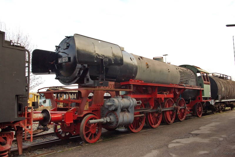 Ist eine Krupp Lokomotive mit der Fabr. Nr. 1935. Von der Deutschen Bundesbahn erhielt sie einen Neubaukessel und Ölfeuerung. Konzipiert hat man die Maschine für die Beförderung mittelschwerer, schneller Güterzüge. Die Baureihe wurde aber auch im Personen-, Eilzug- und sogar Schnellzugverkehr eingesetzt. Ausgestellt ist die 41 113 im Auto- und Technikmuseum Sinsheim.