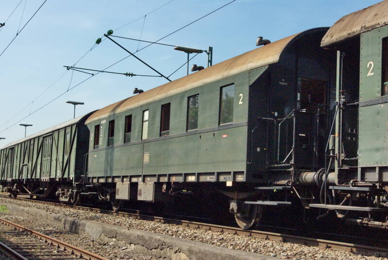 Einheits-Durchgangswagen Ci-28 - Donnerbüchse im Bahnhof Göppingen.