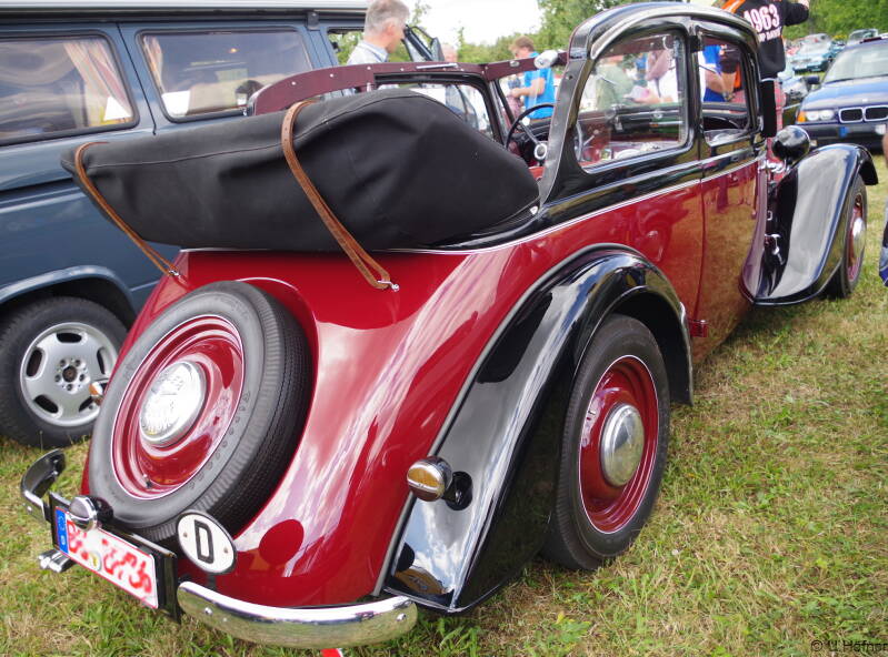 3 PS, 1.066 cm³, 80 km/h, 775 kg, Stückzahl 65.864, Preis 1.450 RM (Durschschnittliches Arbeitergehalt monatl. 200 RM):
